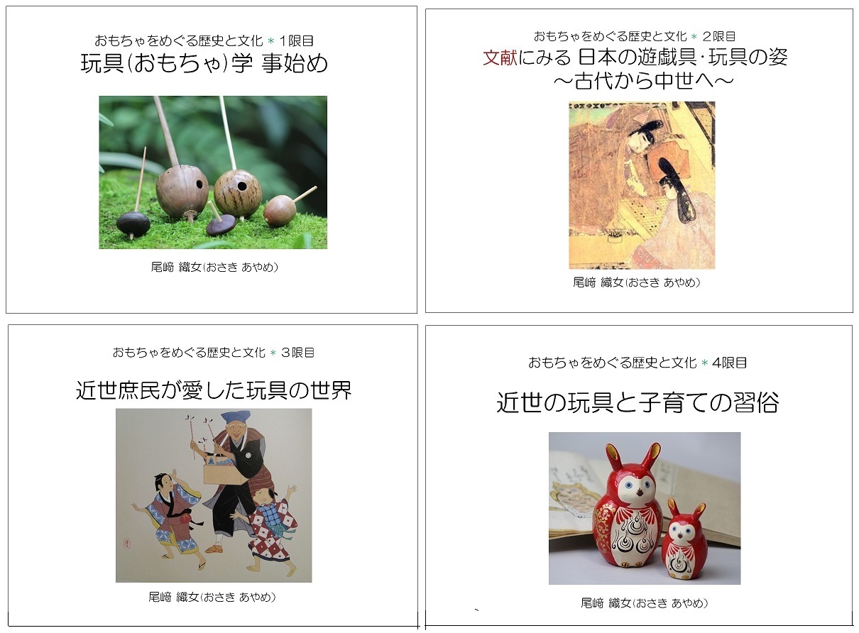 ●今年も筆者は、放送大学兵庫学習センター企画「面接授業」のご依頼をお受け、姫路城をのぞむ<イーグレ姫路>の中にある「放送大学・姫路サテライト」で一日、学習意欲の高い皆さまとともに過ごさせていただきました。大手前公園を見下ろす教室で、❝玩具をめぐる歴史と文化❞をテーマに、終日、ぶっ通しの講義にお付き合いいただいたのは、関東、東海、また四国地方からご参加された10代から80代まで様々な世代の学生さんたち。玩具(おもちゃ)は人と人をつなぐものだから当然ではありますが、古代から近世へとお話を進めるにつれ、また玩具や遊戯具に触ったり遊んだりするなかで、初めて出会われた方々のなかにあたたかい輪(和)が出来ていきます。