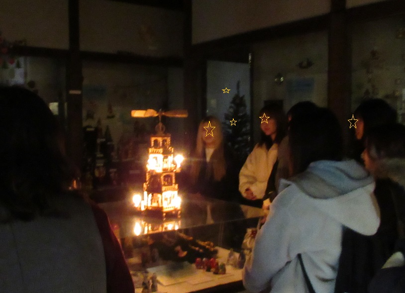 ●クリスマスアドベント第二週の日曜日には、指導教官とともに、神戸女子大から博物館学を学ぶ3年生たちをお迎えし、当館の成り立ちや使命、博物館活動の特徴についてお聴きいただいたあと、世界のクリスマス展の展示解説会にも参加し、様々な世代が集う博物館ならではの空間を体験していただきました。