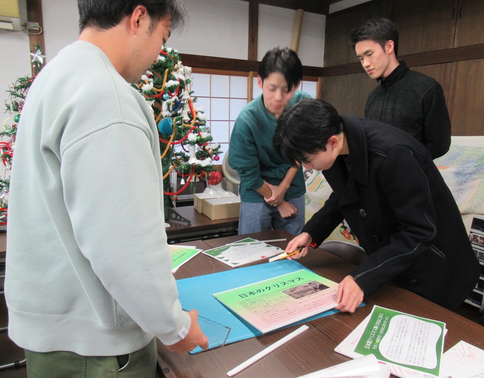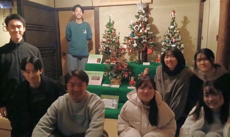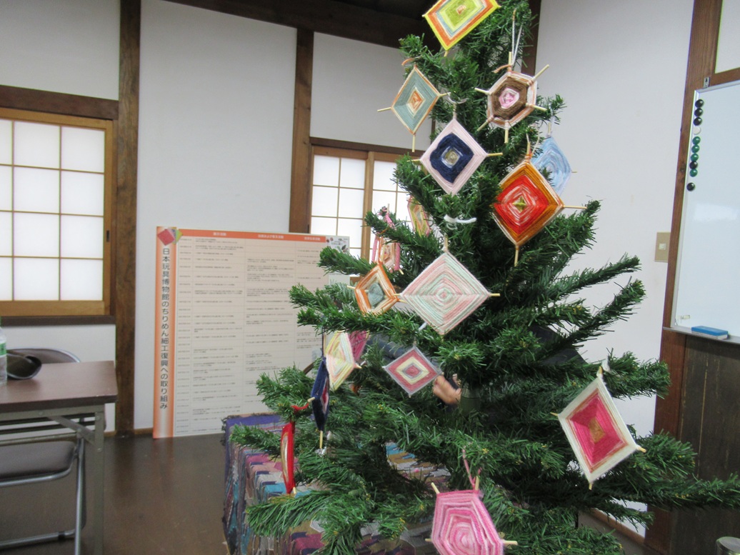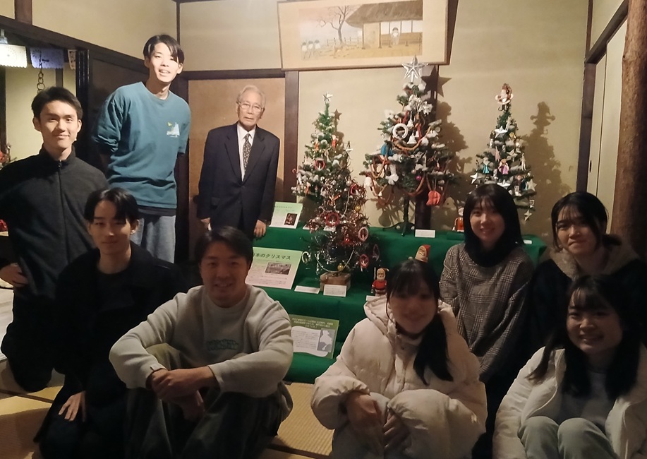 ●和製クリスマスオーナメントの始まりであったとされる貴重な「経木モール」を熟覧していただき、一点一点のオーナメントの表情を楽しみながら、ランプの家のお座敷に昭和時代の懐かしさあふれる「日本のクリスマス」コーナーをつくっていただく実習にも取り組んでもらいました。――暗くなったランプの家のお座敷に出来上がったコーナーを見て、井上館長、「うわぁ~、最高や!!」と大喜びです。ご来館の皆さまには、クリスマスに向けて、賑やかさと温かさを増していく展示館をお楽しみください。