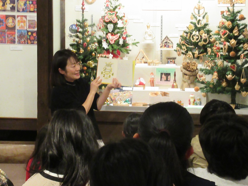 *クリスマス展会場で楽しむ物語———クリスマス人形やクリスマス飾りが登場する絵本の世界を、倉主真奈さんの朗読でご案内します。下記の日時、展示室へお集まりください。ドイツやフランス、スウェーデン、ハンガリー、チェコ、スロバキア、メキシコ、アメリ合衆国など、各地のクリスマス絵本もご紹介もいたします。絵本の世界を通して、各地のクリスマス文化を感じていただければ幸いです。大人の方々にも毎年、好評をいただいております。