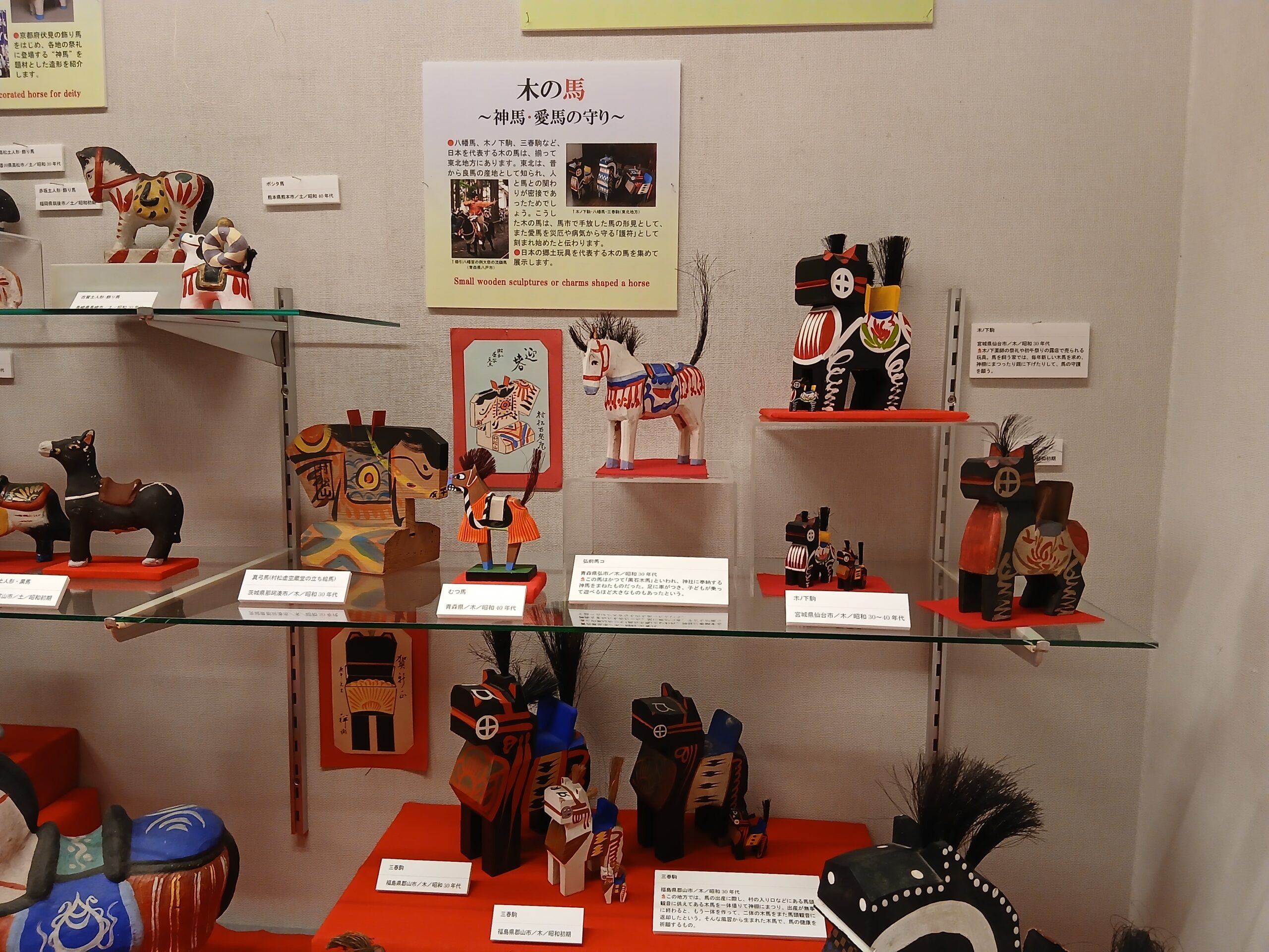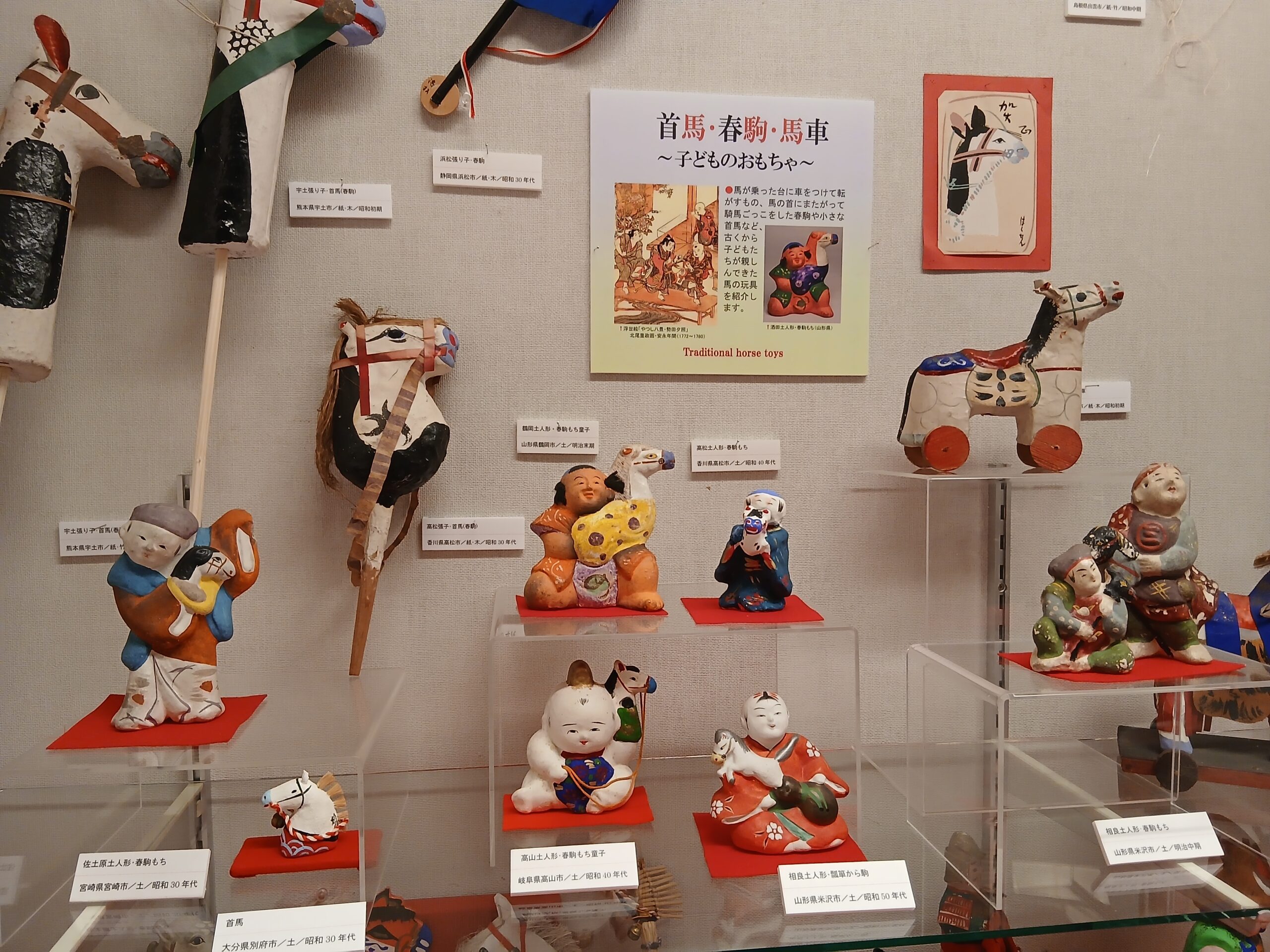 ●本陳列では当館の郷土玩具コレクションのなかから、馬の郷土玩具の性格に焦点をあてて、種類ごとに展示します。それぞれにユニークな玩具の姿を楽しんでいただき、あわせて、人々の馬という動物に寄せる愛着や馬の郷土玩具に託した願いについても思いを巡らせていただければ幸いです。