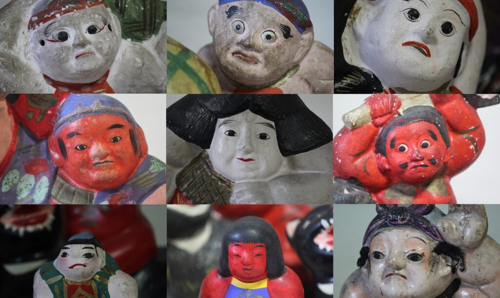 ■本展では、江戸末期から明治・大正時代にかけて、京阪地方で飾られた武者姿の人形飾りを展示し、合わせて、庶民の間に人気を博した人形飾り――土や紙など身近な素材を利用して量産され、かつての農村の五月を彩った金太郎、武者、力士、張り子の虎等をご紹介します。加えて、戦前、庶民の間で人気を博した端午の掛け軸飾り、鯉のぼりなどを合わせて明治・大正・昭和の素朴な節句飾りをしのびます。