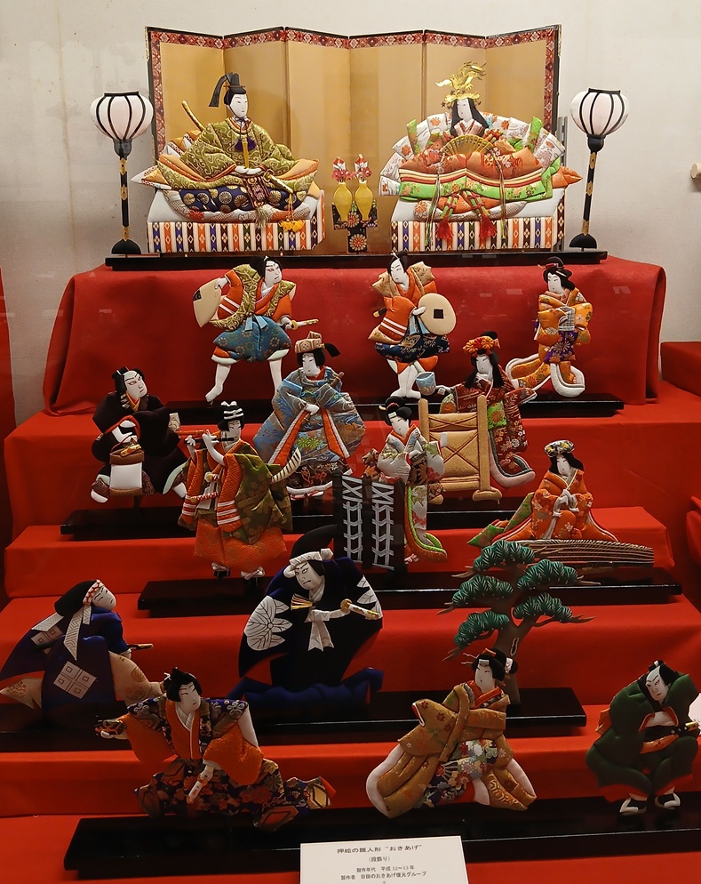 *第二節では、大分県日田市の「おきあげ」、岩手県奥州市水沢の「くくり雛」、長野県松本の「押絵雛」、「押絵雛の掛け軸飾り」など、各地の押絵雛飾りを紹介します。