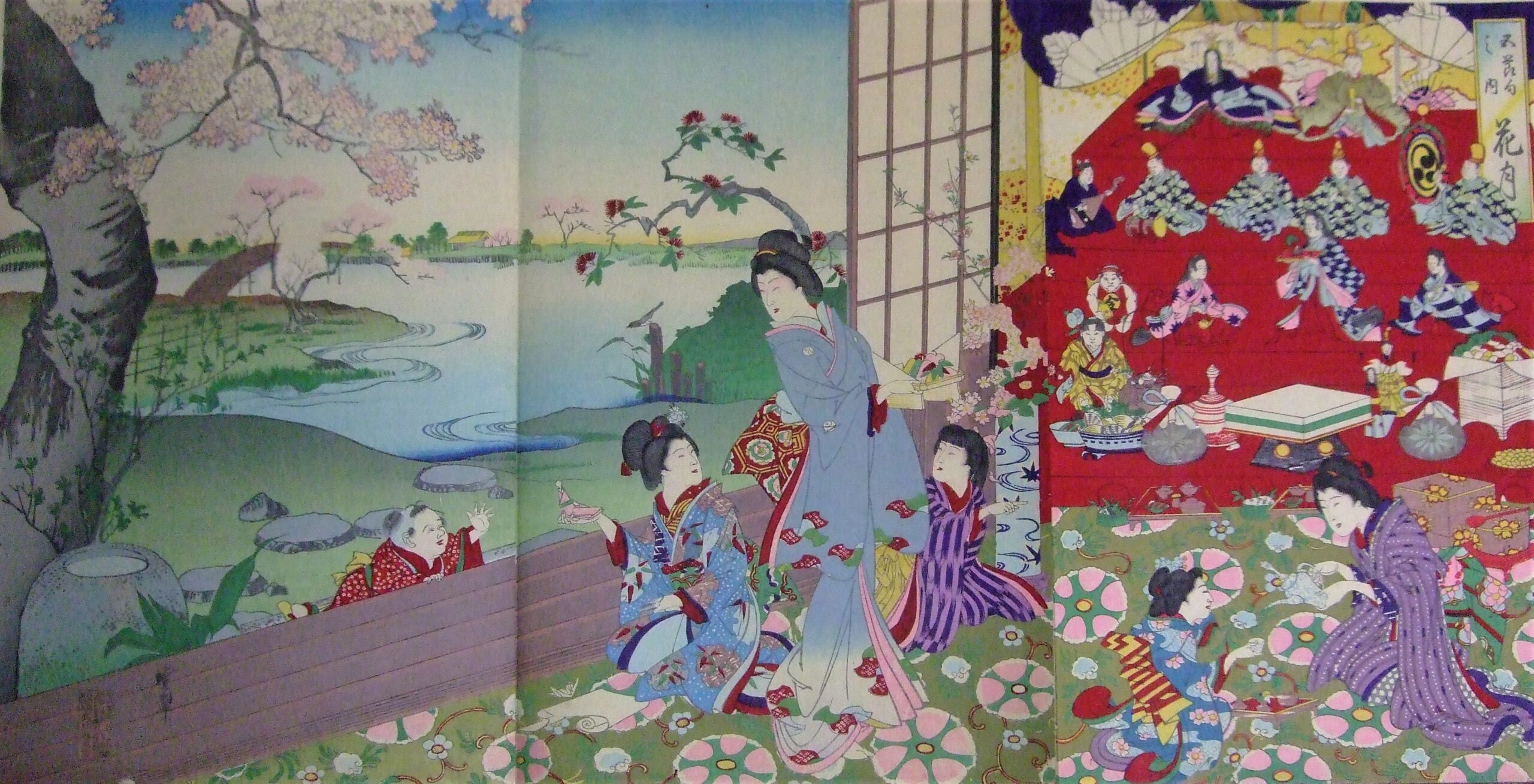 明治時代の雛まつり(「五節句之内花月」河鍋暁翠画/明治25年)