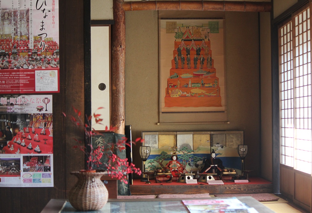 *ランプの家、1号館の囲炉裏端にも雛人形を展示しています。畳の間の雛飾りをお楽しみ下さい。