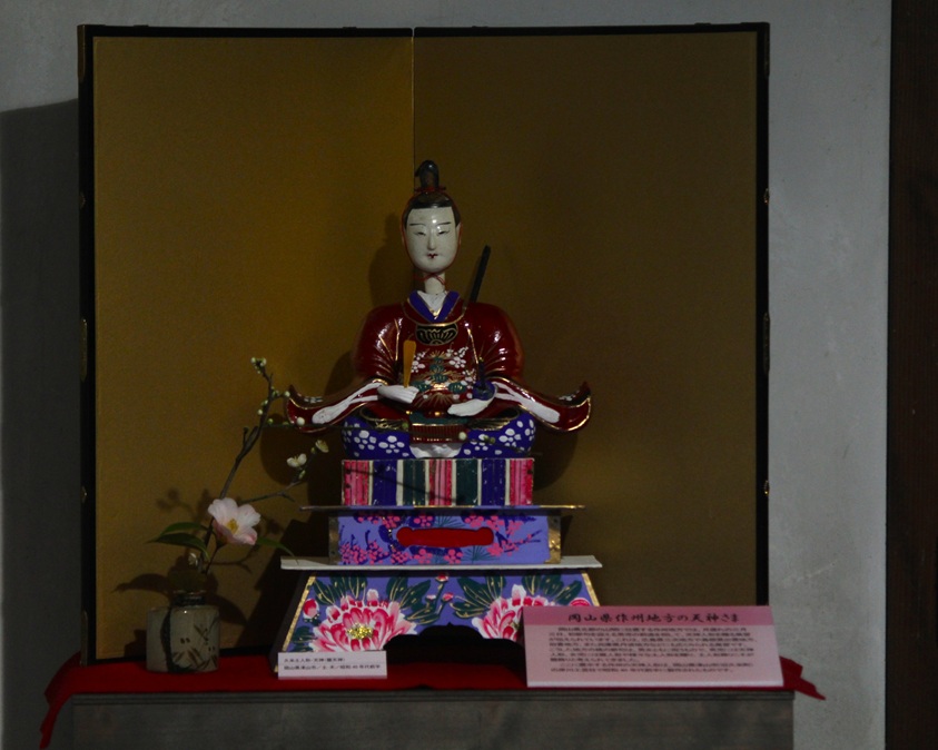●三月の節句が近づき、6号館のテラスには岡山県津山市(旧久米町)の天神さまを飾りました。かつて月遅れの桃の節句に男児の初節句を祝って贈られたもの。昭和40年代初頭、岸川工芸社製です。ふるさとの雛のバリエーションのひとつとしてご覧ください。